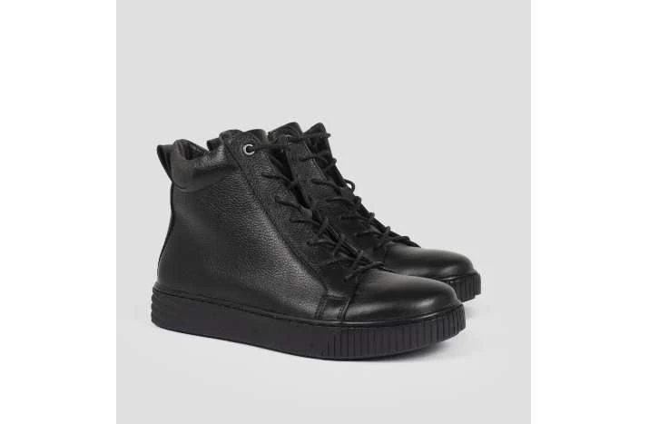 Высокие ботинки из натуральной кожи прочные и долговечные, ваши ноги будут дышать и останутся сухими весь день. Их легко надевать благодаря молнии, а эластичная вставка сбоку и ремешок позволят регулировать посадку. Модель подойдет людям с разной полнотой икр, край обуви не будет сдавливать ногу. Подкладка и стелька из байки мягкие и легкие, с ними вам будет комфортно весной, осенью и зимой при температуре до -5. Подошва из термоэластопласта не теряет своих качеств при минусовой температуре, не промокает и не скользит.