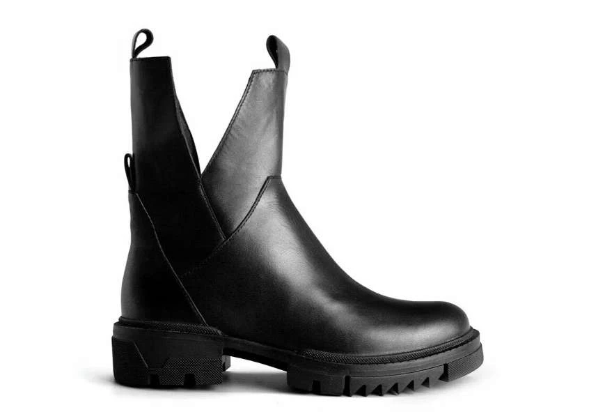 Необычные по форме недорогие женские ботинки станут вашей любимой парой на осень и весну. Сделаны из прочной и дышащей натуральной кожи. Она дает ногам дышать и поддерживает здоровый микроклимат в обуви. Надевать легко за счет молнии. V-образные выемки по бокам подчеркивают щиколотки и делают силуэт ботинок нестандартным. Носите модель в стилях кежуал и рок с узкими джинсами, укороченными брюками или колготками. Мягкая и легкая байковая подкладка будет согревать ноги ранней весной, поздней осенью и теплой зимой.