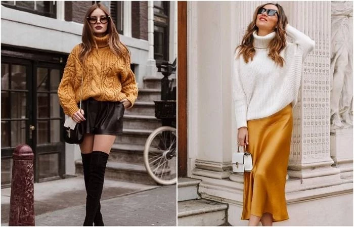 Стиль, при котором свитер заправляется в пояс брюк или юбки, далеко не всегда подходит каждой фигуре или конкретному наряду. Если у вас есть избыточный объем в области талии, лучше выбирать свитера, которые сидят свободнее. Это поможет создать более гармоничный образ. Также обратите внимание на длину юбки ― наилучшим вариантом будет, если она заканчивается до середины икры, что добавит стильности вашему уличному наряду.