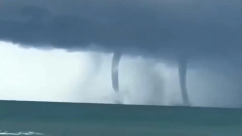 В Туапсинском районе Краснодарского края видели три смерча у берега моря. Их показали на видео.
