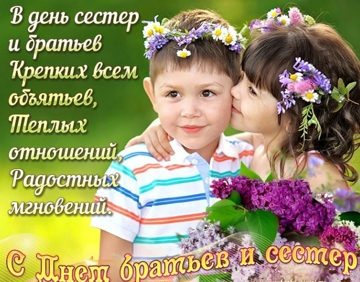 Поздравляю тех, у кого есть братья и сестры, помните о том, что в их лице вы всегда найдете для себя крепкую опору. Дорожите тем, что имеете, ведь семейное родство – это один из столпов, на котором стоит общество. Всегда защищайте друг друга и дарите своим близким самую нежную любовь. Пускай в ваших семьях всегда царит взаимовыручка и взаимопонимание. Пускай Судьба преподнесут вам много ценных подарков, а ваши близкие станут одним из них. С праздником вас.