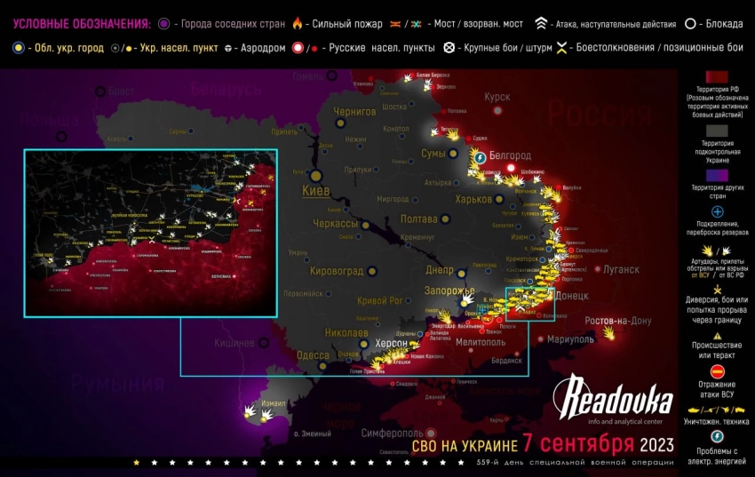- Карта военных действий и ситуация на фронтах вечером 7 сентября от Телеграм-канала «Readovka»