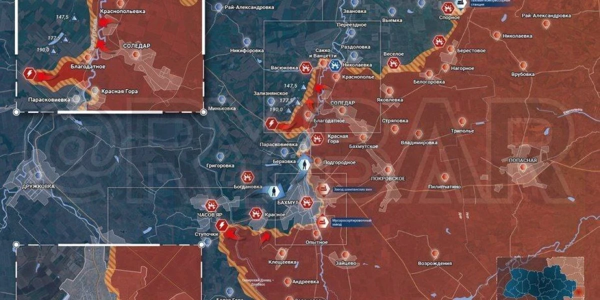 Российские войска активно пытаются обогнуть систему укреплений с севера и выйти на трассу Бахмут — Славянск, полностью лишив Бахмутский гарнизон снабжения. Кроме того, это позволит приблизиться к Берховке и в перспективе взять группировку в северных пригородах Бахмута в миникотел.