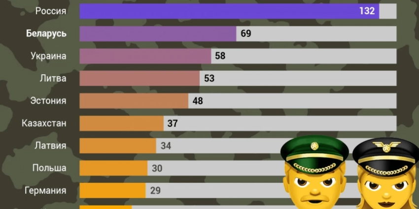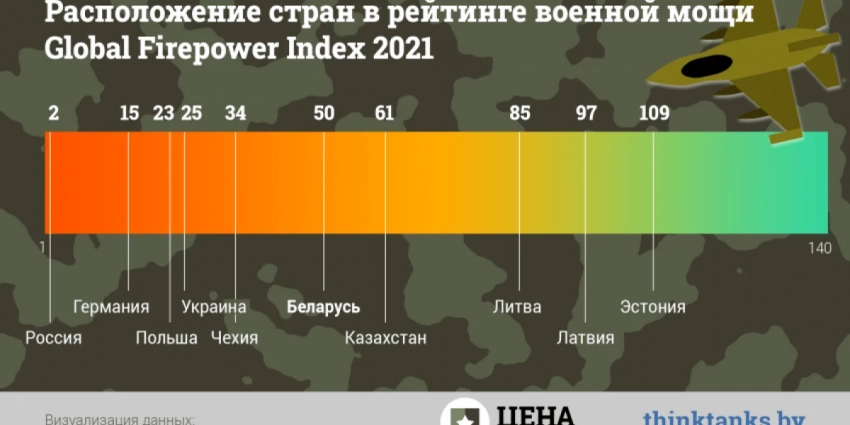 При этом в Европейском субиндексе военной мощи Беларусь занимает 14-е место из 34 стран, а среди стран Восточной Европы она находится на 6-й позиции из 11 государств.