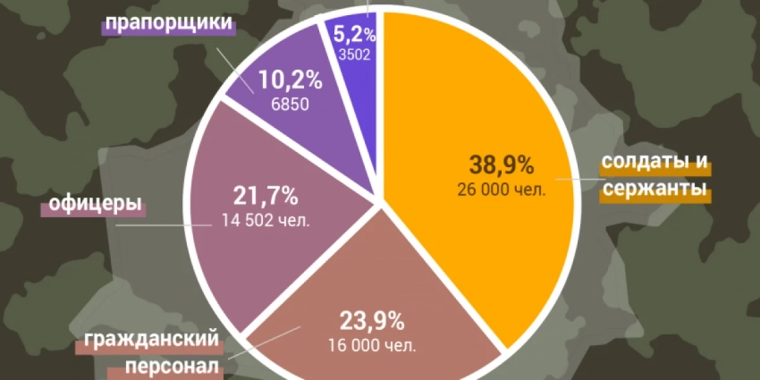 По данным, которые озвучивал министр обороны Беларуси еще в 2016 году, помимо солдат и сержантов в армии насчитывается 14 тысяч 502 офицера, 6 тысяч 850 прапорщиков, 3 тысячи 502 курсанта, а также около 16 тысяч гражданского персонала, которым надо платить.