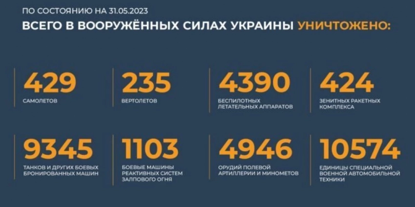 Сводка Министерства обороны Российской Федерации о ходе проведения специальной военной операции (31.05.2023 г.)