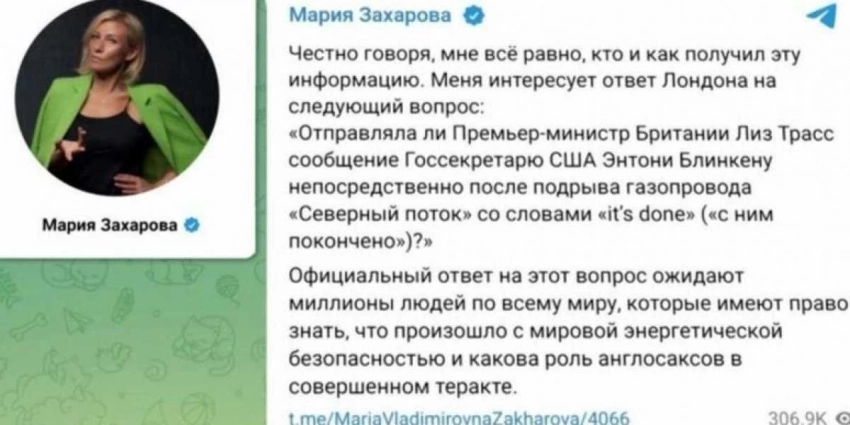 Последние дни, буквально, все британские издания сообщают о возможной причастности Британии и США, также Л.Трасс к истории с подрывом газопроводов «Северный поток».
