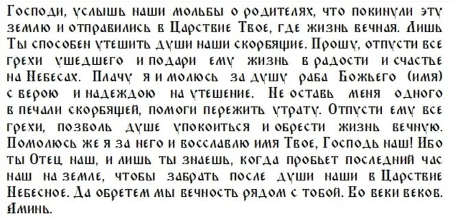 Молитва об усопших родителях