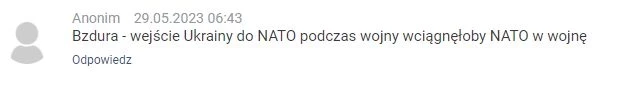 «Вступление Украины в НАТО во время военных действий втянуло бы Альянс в войну», – отмечают пользователи варшавского издания Niezalezna.