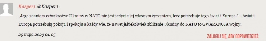 «Миру и Европе действительно нужен мир и покой. И всем известно, что любое сближение Украины с НАТО является гарантией войны», – пишет читатель другого польского издания, Kresy.