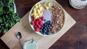 - на завтрак кушать кашу, фрукты или кисломолочные продукты, в обед – белки и овощи, на ужин – кефир или творог;