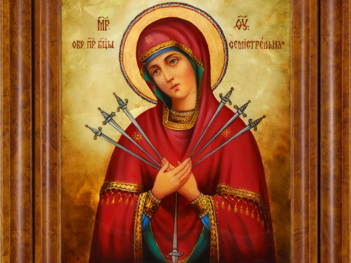 Икона Божией Матери «Умягчение злых сердец» известна людям под названием «Семистрельная». На ней Богородица изображена, пронзенная стрелами.
