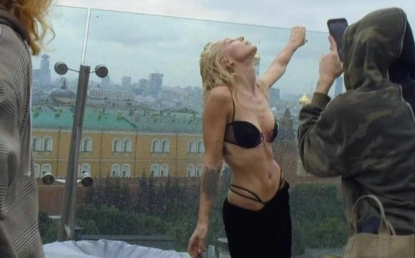 Ивлеева позировала в черном бюстгальтере и спущенной юбке на фоне Кремля