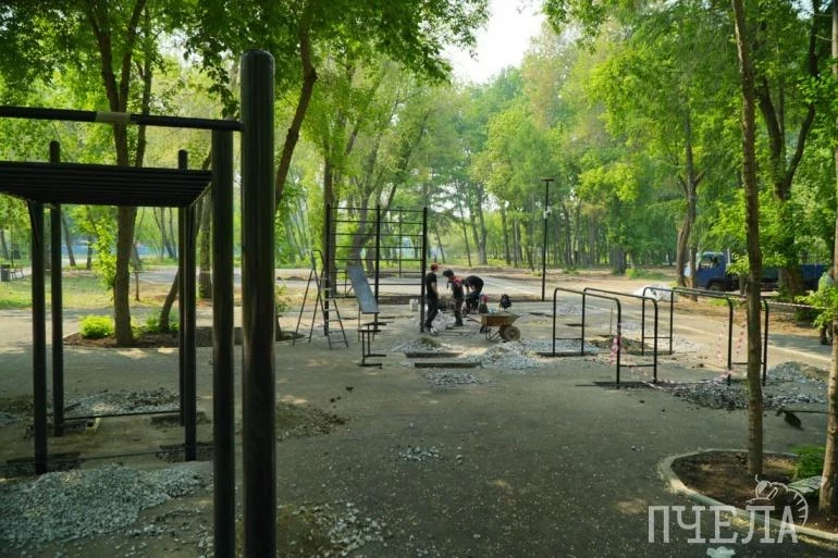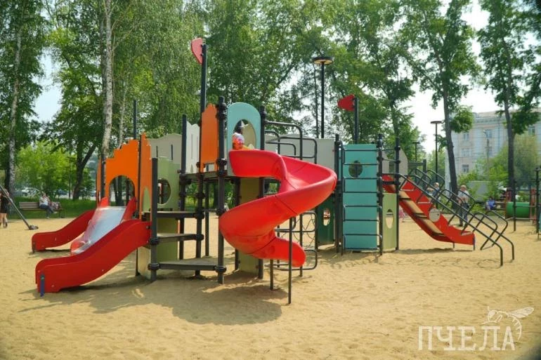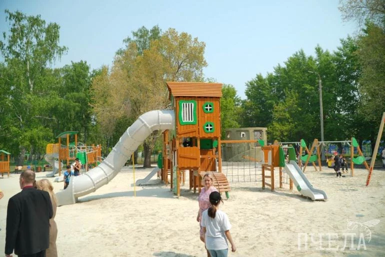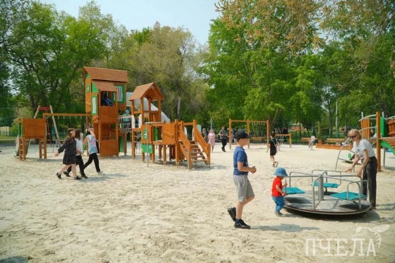 Здесь появились новые лавочки и современное освещение. Для юных посетителей установили детскую площадку с множеством горок, каруселями и тарзанкой.