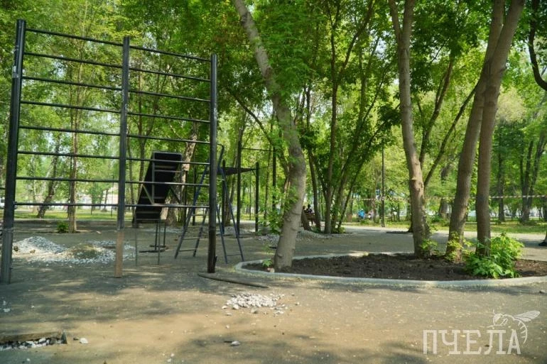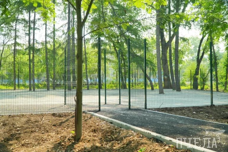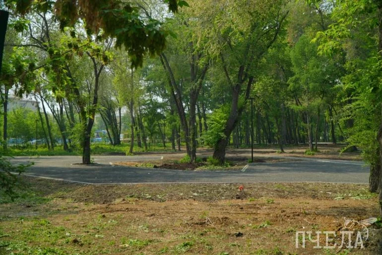 На первых двух этапах в нём вырезали аварийные деревья, сделали тропинки, освещение, установили игровую площадку