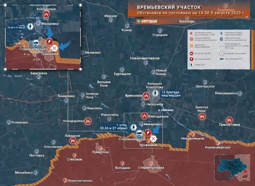 Однако потери противника уже существенны. Да, их восполняют и доукомплектовывают, но положение с каждой атакой ухудшается. На помощь, по данным Telegram-канала «Воин ДВ», из Орехово в Большую Новоселку было переброшено одно подразделение 15 бригады нацгвардии «Кара-Даг».