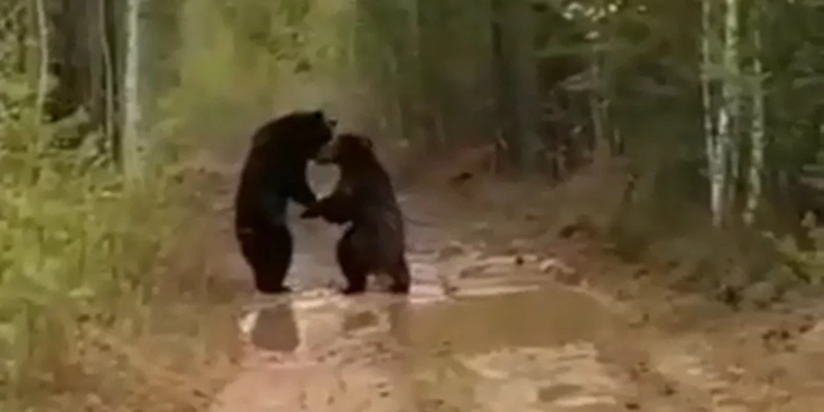 Необычная сцена на дороге в России в исполнении двух медведей появилось на просторах интернета