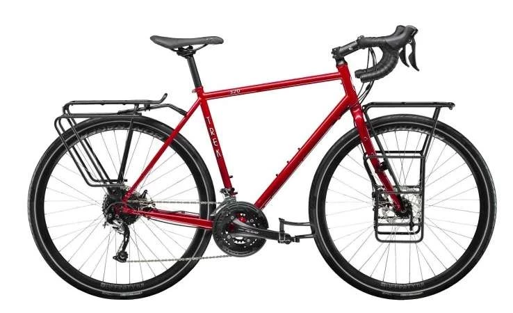 Завершает наш обзор туристический велосипед Trek 520. Этот велосипед имеет удлиненную конструкцию, что позволяет разместить все необходимое снаряжение на нем, а благодаря архитектуре рамы и множественным креплениям сохраняет отличную сбалансированность. Она выполнена из хроммолибденового сплава, поэтому туристические велосипеды прекрасно выдерживают поездки по бездорожью и устойчивы к механическим воздействиям. К тому же такой материал обладает высокими амортизационными свойствами.