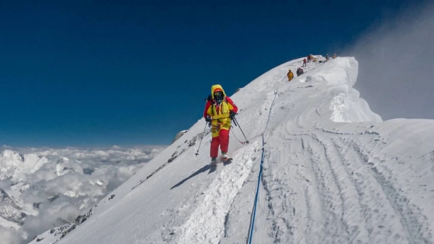 Камчатский альпинист первым из россиян спустился с вершины Эвереста на лыжах