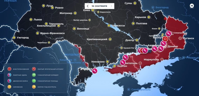 Сегодняшняя карта боевых действий на Украине: данные на 19.09.2023