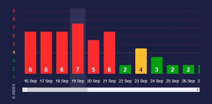 Важно помнить, что прогнозы магнитных бурь зависят от юрисдикции площадок. Так, meteoagent.com уже несколько дней фиксирует повышенную геомагнитную активность на уровне K-index 6-7. На 20 сентября прогнозируется небольшой спад с максимальными пиками до 5 баллов. Окончательное завершение шторма ожидается не раньше пятницы. Однако, с обновлением прогнозов может выясниться, что он продолжился.