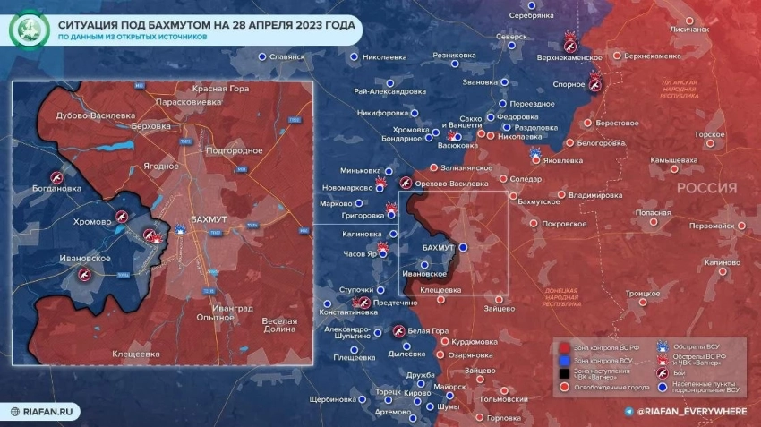 Украина сегодня 28 апреля 2023, последние новости: ВС РФ продвигаются на Донбассе. Спецоперация (СВО) России сегодня, карта боевых действий
