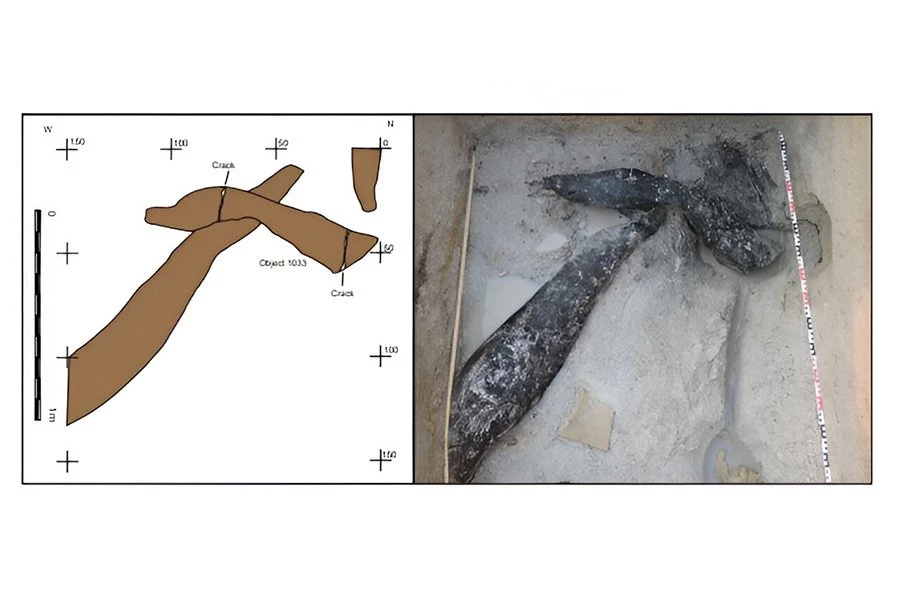 Экспертный анализ следов каменных орудий на древесине показывает, что эти древние люди сформировали и соединили два больших бревна, чтобы создать конструкцию, вероятно, фундамент платформы или часть жилища.