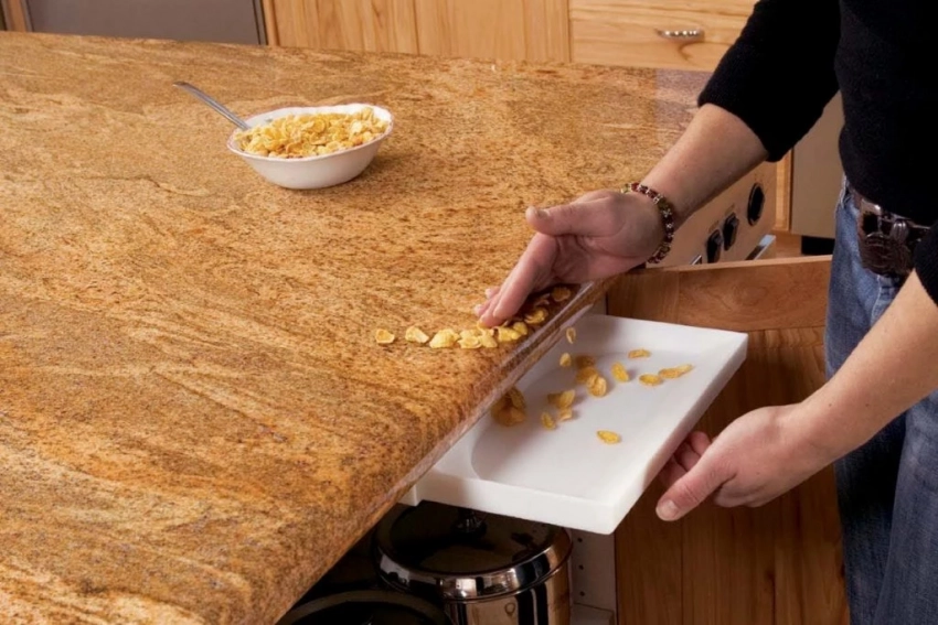 - сметать оставшиеся на столе крошки только при помощи тряпки либо губки;