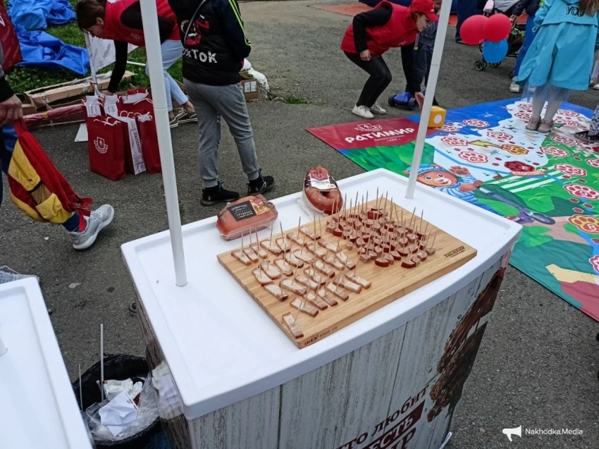 Дегустация вкусных новинок от компании удалась на славу. Канапе из колбасы “Ратимировской” серии, сосисок, и деликатесов серии “Приморские рецепты” сметали, едва девушки в красных жилетах успевали их нарезать. Особой популярностью вкусности пользовались у детворы и курсантов Дальневосточного мореходного училища.