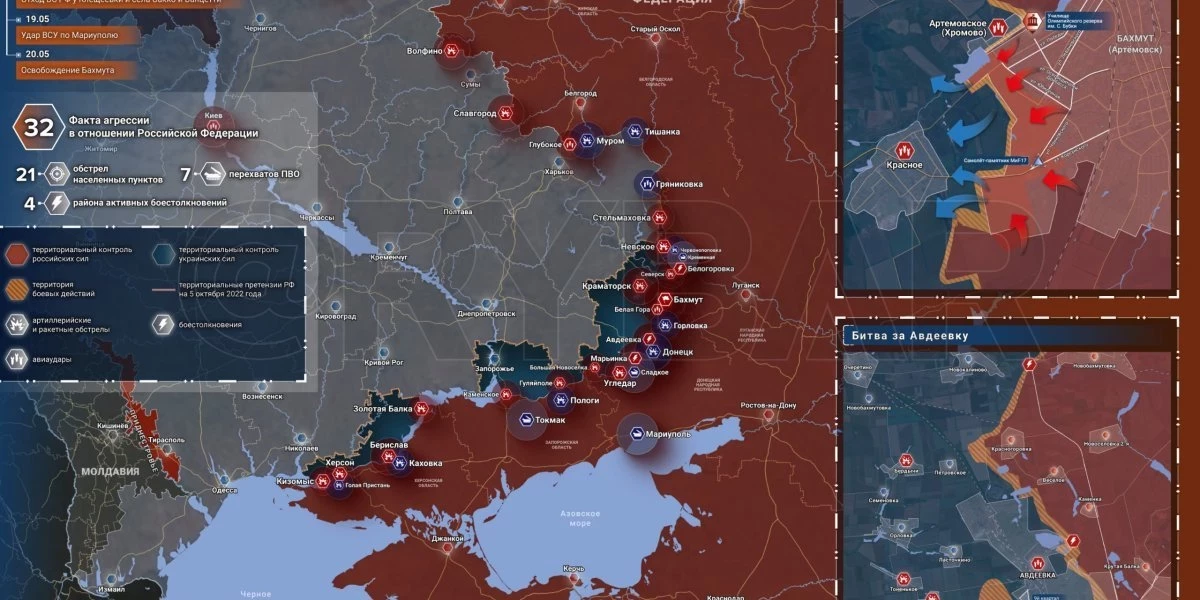 Боевые действия на Украине 22 мая 2023: новая карта боевых действий на Украине 22.05.2023. Новая карта Украины