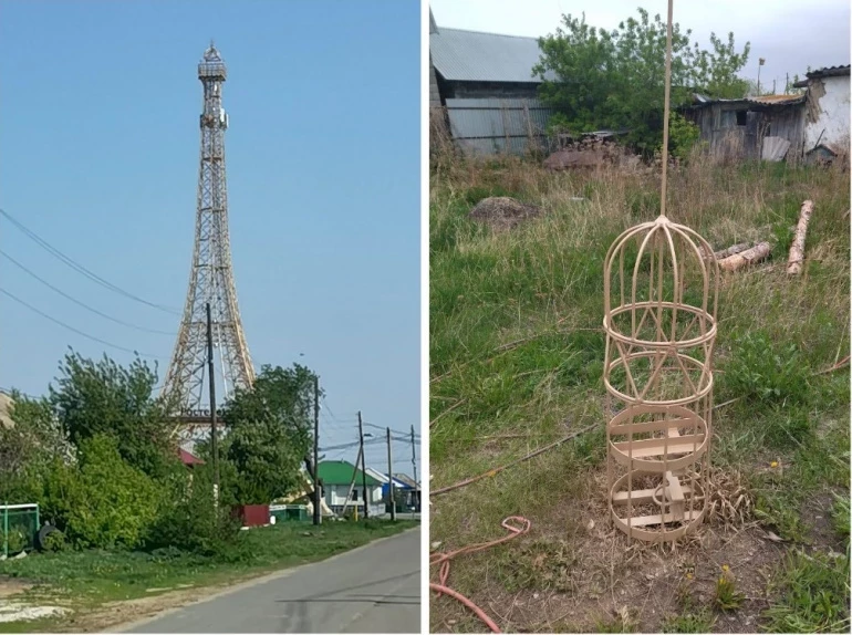 Село Париж в Челябинской области основано оренбургскими казаками в память о пребывании российских войск во Франции во время Отечественной войны 1812 года. Эйфелеву башню в селе построили 18 лет назад «во славу русских воинов-победителей». Вышка передаёт сотовый сигнал, обеспечивает работу беспроводных транспортных каналов и широкополосный доступ в интернет.