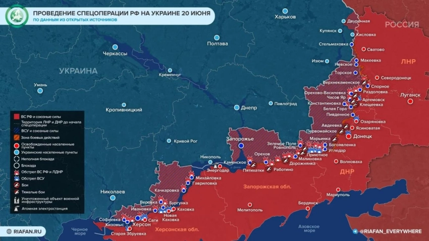 Украина сегодня: карта боевых действий на 20 июня