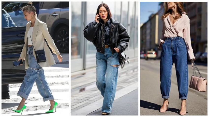 Другой интересный вариант – джинсы-баллоны. Этот свободный и объемный фасон с высокой посадкой будет популярен в 2024 году. Носите их с коротким верхом и обувью на каблуке для элегантного вида. В холодные дни добавьте под них еще один слой одежды, чтобы быть в тепле и комфорте.