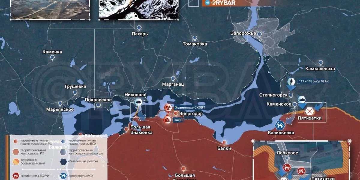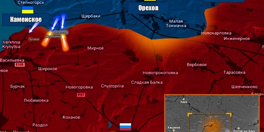 Зона наступления между Пятихаткам и Работино — главный участок удара ВСУ в сторону Молочного лимана на Азовском море.