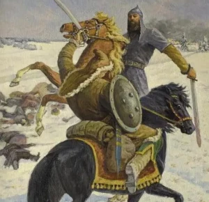 Он сражался в битвах и от его меча было положено большое количество врагов. Однако в одной из битв он получил поражение, но его тело было доставлено на родину, и тем самым было выражено уважение к богатырю.