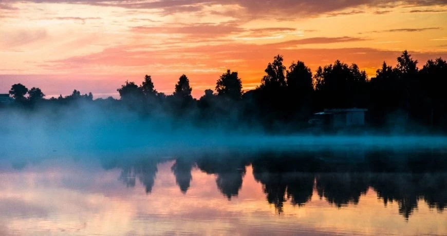 - легкая дымка у берега реки или озера – погода будет солнечной;
