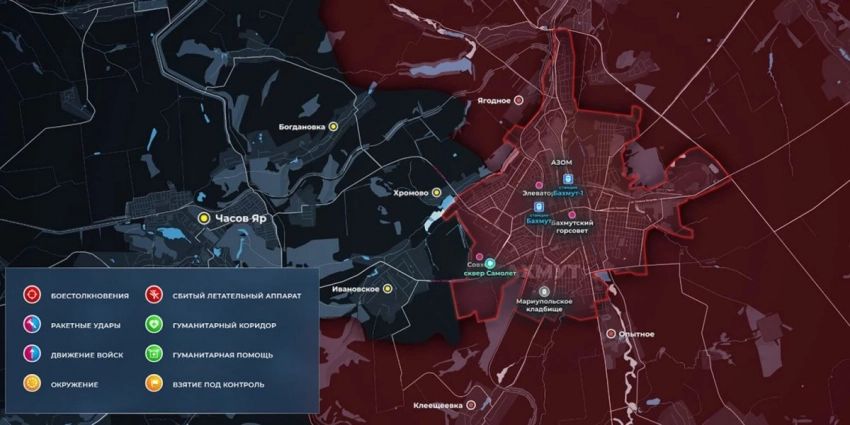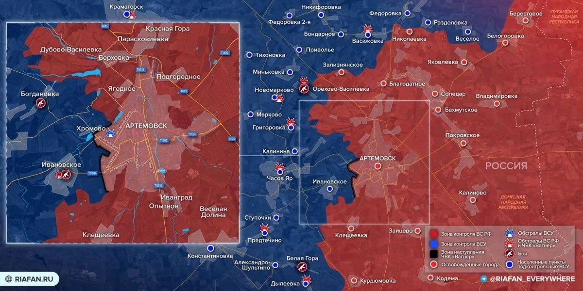 Карта боевых действий на Украине сегодня, обстановка к утру 2 июня 2023 года от Mash. Бои за Артёмовск