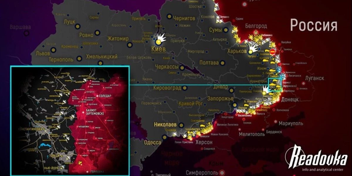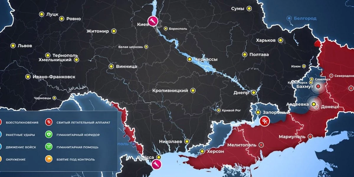 Карта боевых действий на Украине сегодня, Общая обстановка к утру 2 июня 2023 года от Mash