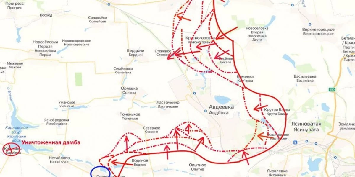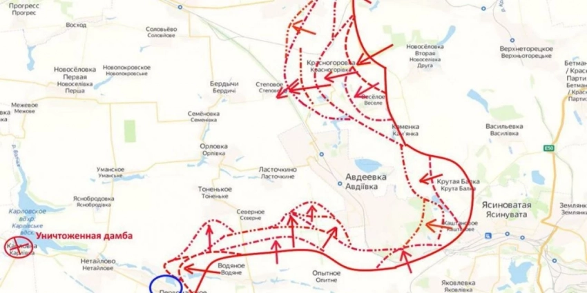 Карта боевых действий на Украине сегодня, обстановка к утру 2 июня 2023 года от Mash. Бои за Авдеевку