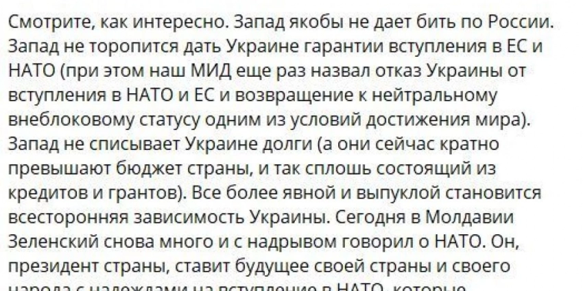 Он прокомментировал публикацию Responsible Statecraft, согласно которой у НАТО есть секретный план на тысячи страниц при столкновении с Россией, и план должен быть принят на саммите в Вильнюсе.