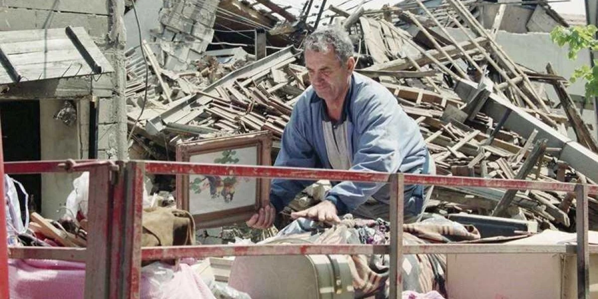 Центральная Сербия. Житель города Валево, впервые подвергнутого бомбардировке авиацией НАТО