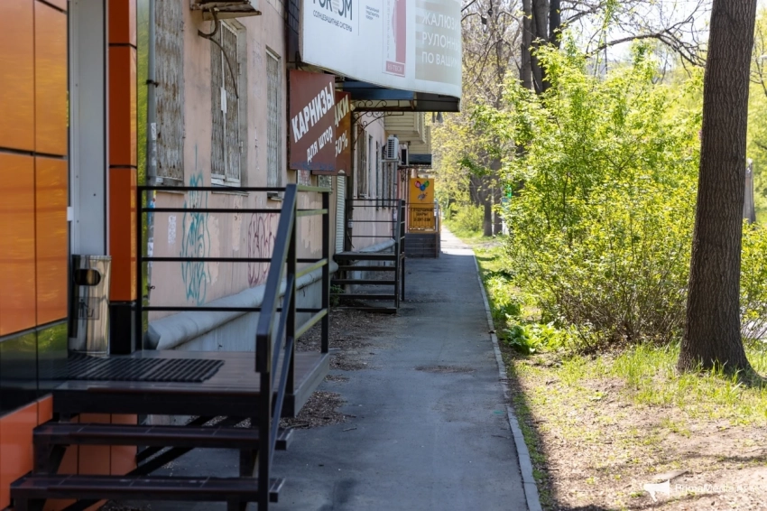 Дальше, кажется, можно выдохнуть и только прогуливаться, любуясь зелёнью, но нет… После остановки “Спортивная”, чуть пройдя по дорожке мимо “парковки” с электросамокатами, пешеход увидит реку Объяснения и ограждение — да не простое, а двойное. Из-за чего узкий проход в один момент просто исчезает, а потом снова появляется. Но и это ещё не конец квеста — сразу после сужения пешеходной зоны в ней появляются ямы.