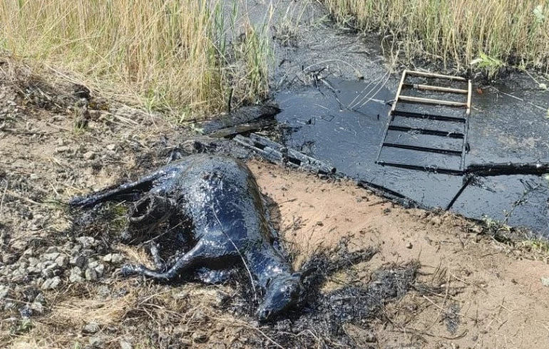 Животное захлебнулось в битуме и погибло