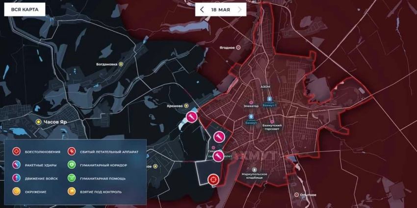 Карта боевых действий в Артемовске (Бахмут) на сегодня, 19 мая 2023 года