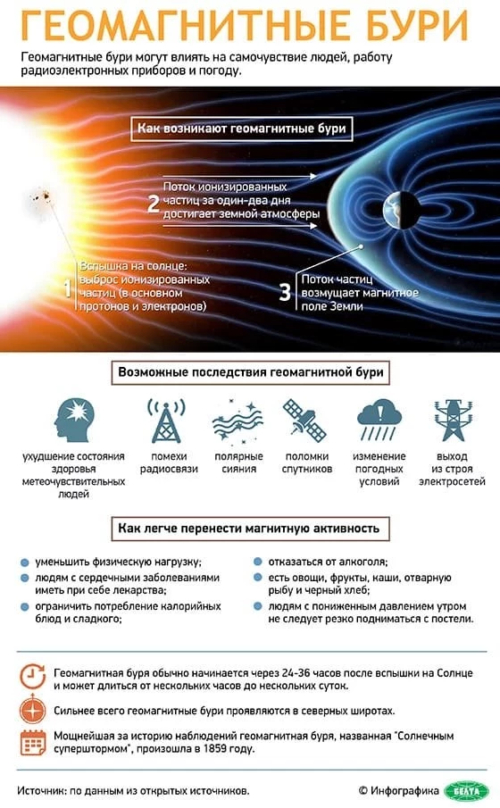 По словам специалистов, сильные магнитные поля, в первую очередь, влияют на спутниковую навигацию и системы связи. Они могут выйти из строя. Кроме того, некоторые люди могут почувствовать головную боль и общее недомогание, возможна бессонница.