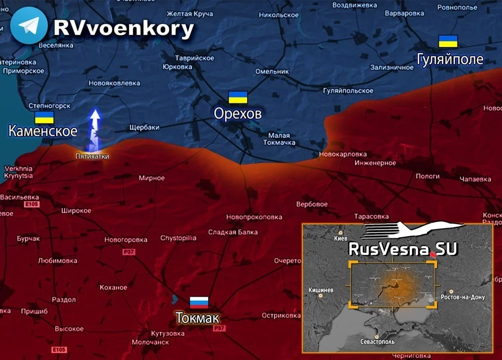 Ситуация на Запорожском фронте от Телеграм-канала «Операция Z: Военкоры Русской Весны«:Враг неожиданно вывел войска из Пятихатки и отступил