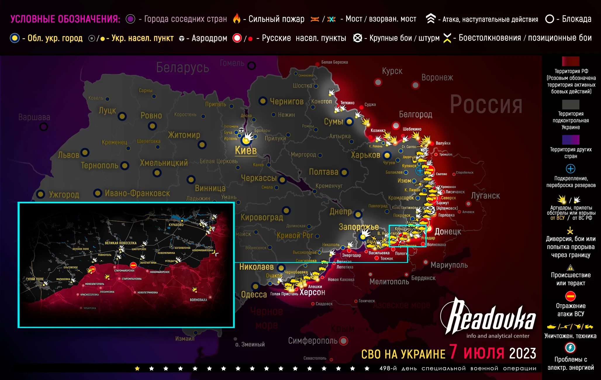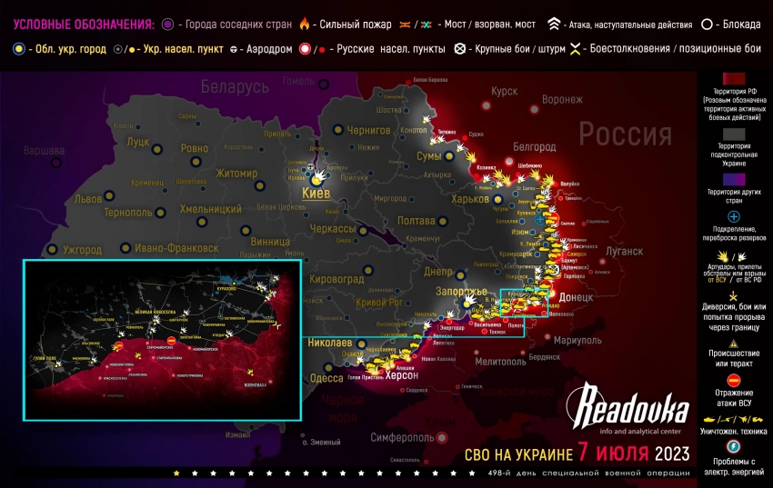 Карта военных действий и ситуация на фронтах вечером 7 июля от Телеграм-канала «Readovka»