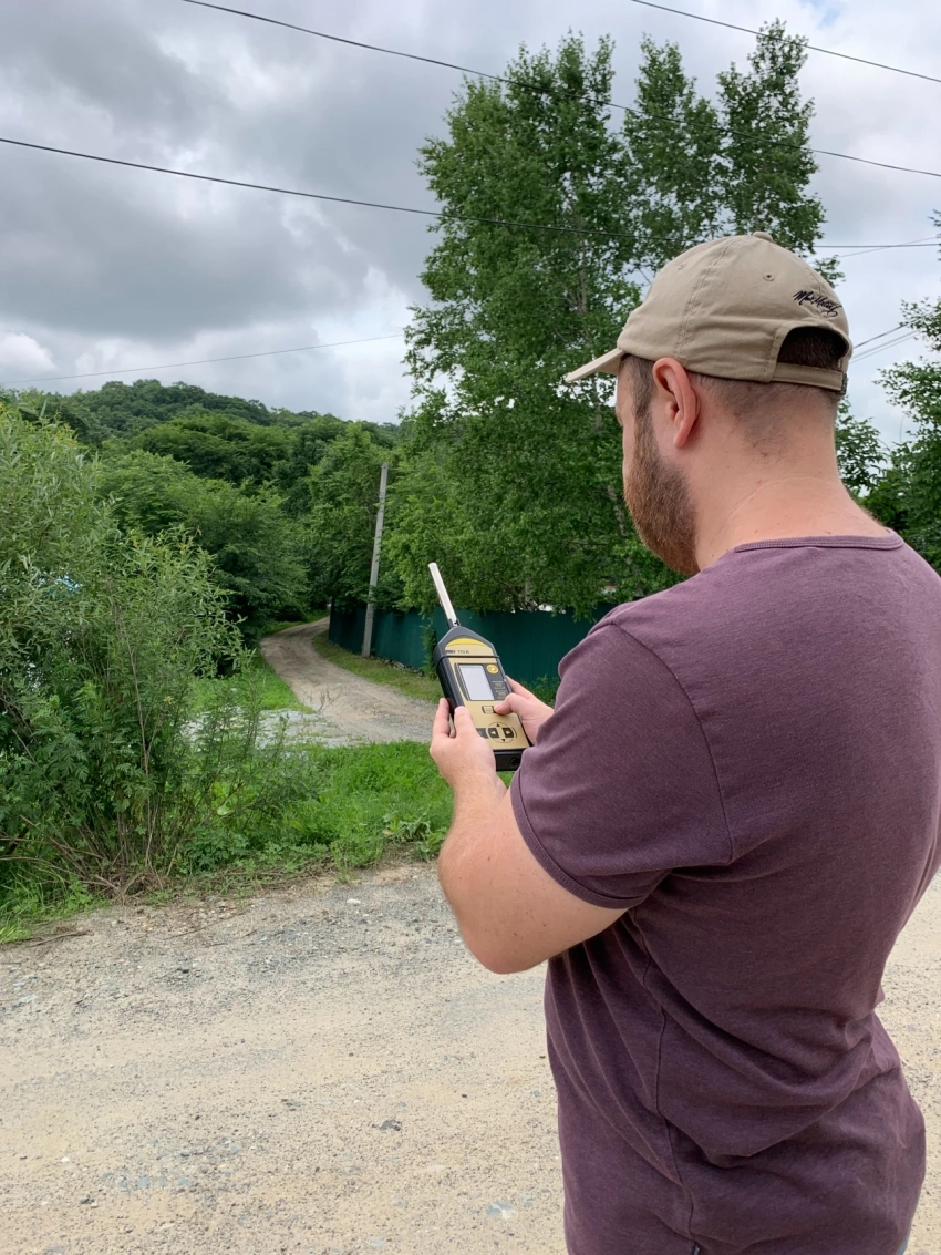 Замеры уровня шума в момент взрыва в карьере “Ключевое-5” на улице Центральная в поселке Ключевой. Фото: ИА PrimaMedia