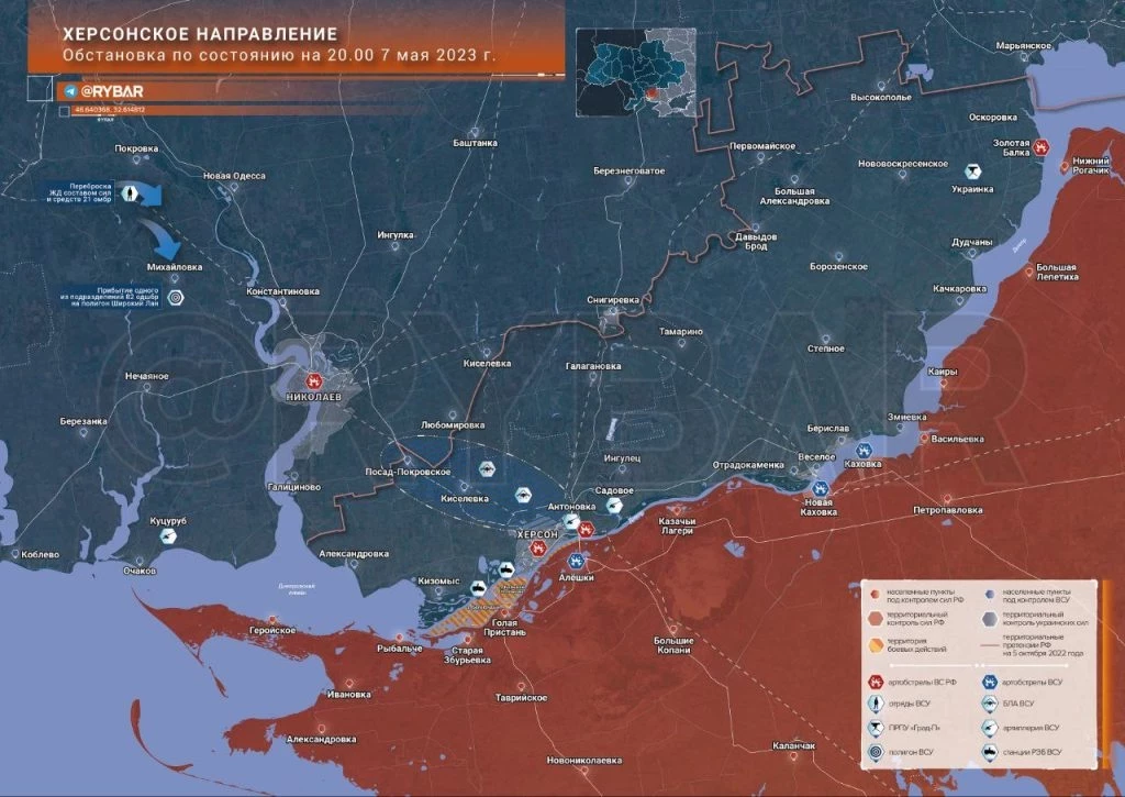 Карта боевых действий: Херсонское направление обстановка по состоянию на 23.00 7 мая 2023 года