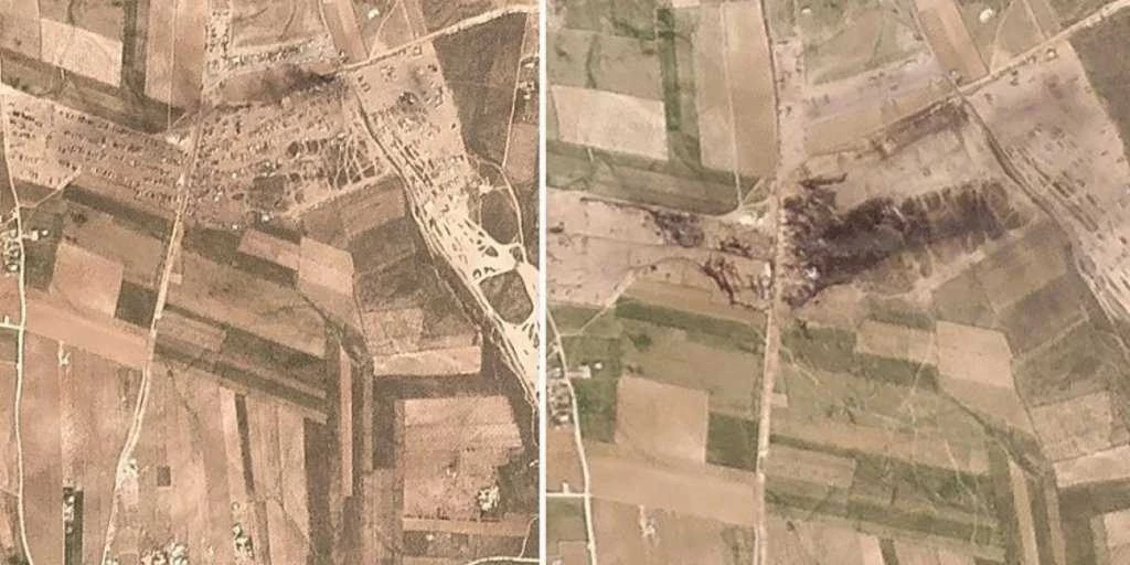 Спутниковый мониторинг Национального управления по аэронавтике и исследованию космического пространства США (NASA), который отслеживает вспышки на земной поверхности, связанные с пожарами или взрывами, показал большие очаги возгорания на этом месте рано утром 6 марта.